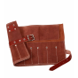 Unser umweltfreundlicher Gerbprozess bewahrt die natürliche braune Oberfläche, unterbrochen von elfenbeinfarbener Naht und silbernen Nieten.