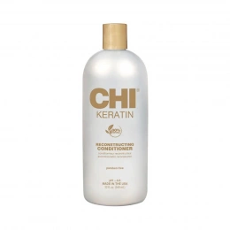 CHI Keratin Reconstructing Conditioner von Farouk Systems ist ein hochregenerierender Conditioner, der für strapaziertes, geschädigtes und dehydriertes Haar entwickelt wurde. Dank der Kombination aus natürlichem Keratin, Jojobaöl und Arganöl wird die Haarfaser intensiv regeneriert, die Oberfläche geglättet und die innere Struktur des Haares gestärkt. Das Ergebnis sind gesund aussehende, stärkere und geschmeidigere Haare mit sichtbarem Glanz.