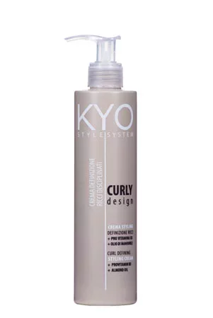 KYO CURLY DESIGN Stylingcreme für perfekte Locken. Es ist eine Styling-Creme, angereichert mit Vitamin B5 und Mandelöl. Hilft, das Haar vor dem Styling zu beleben und zu definieren. Verstärkt die Struktur von lockigem und welligem Haar. Seine nährende Formel verleiht welligem Haar Volumen, Weichheit und Elastizität. Hat eine antistatische Fähigkeit. Das Haar bleibt leicht, glänzend und natürlich wellig.