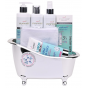 Schöne Geschenkverpackung mit feuchtigkeitsspendender Pflege mit Hyaluronsäure in dekorativer Schale. Schenken Sie Schönheit und Jugend.
