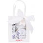 Geschenkverpackung mit Lavendelkosmetik in einer Papiertüte zur Pflege von Körper- und Gesichtshaut.