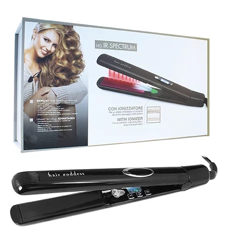 Haarglätter mit Infrarottechnologie und Ionisator für einen antistatischen und glänzenden Effekt bereits ab der ersten Anwendung. Geeignet zum Erstellen von glattem oder welligem Haar.