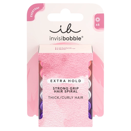 Spiralhaargummi Invisibobble Extra Hold mit festem Halt.Mit der HAIRLOVETECH™-Technologie. Ideal für dickes und lockiges Haar, sorgt das Haargummi für maximalen Halt dank des außergewöhnlich starken Griffs und hält gleichzeitig bequem im Haar. Die Verpackung enthält 6 Stück in verschiedenen Farbvarianten.