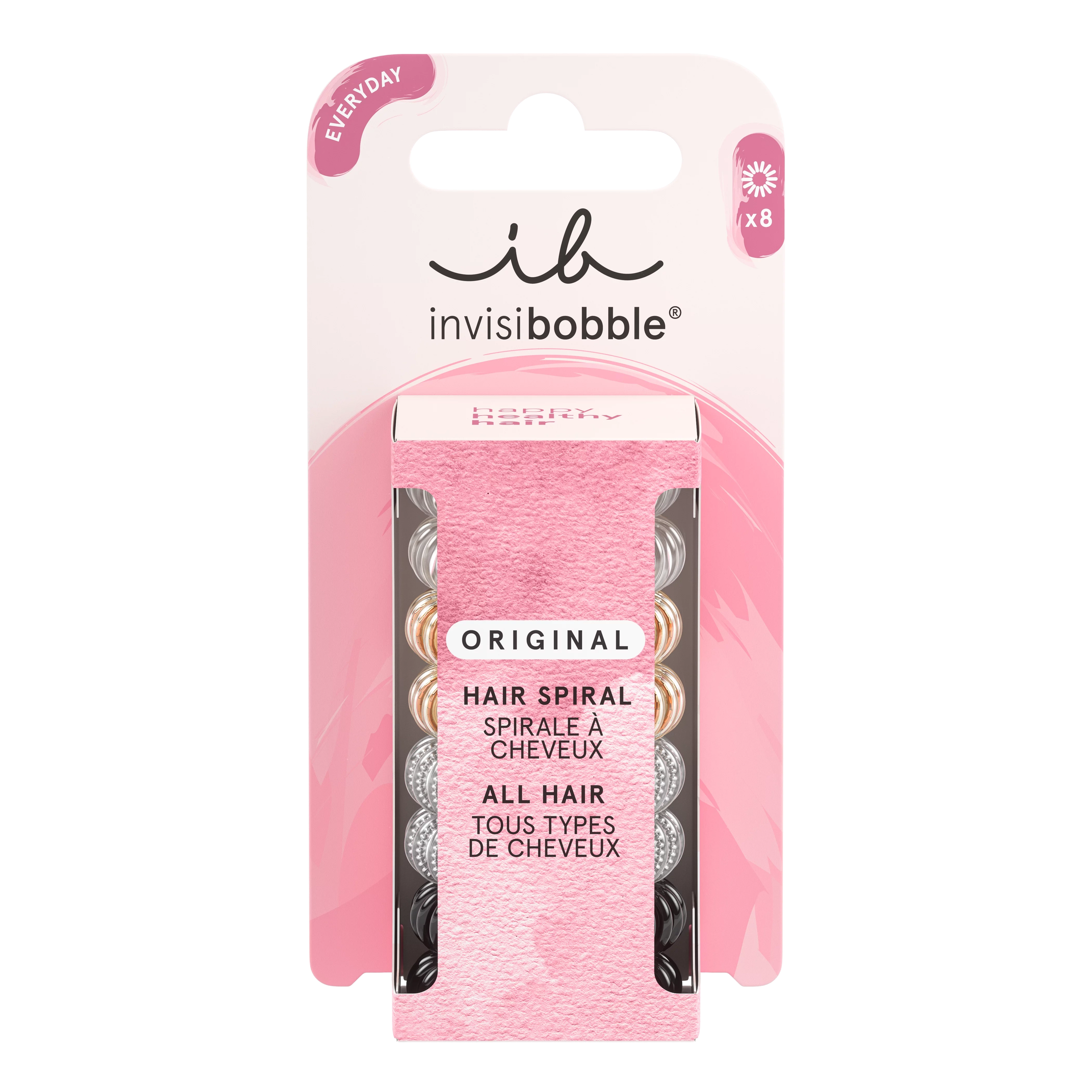 Die Haargummis Invisibobble® Original sind dank ihrer spiralförmigen Form schonend zu den Haaren, ziehen nicht, brechen nicht, hinterlassen keine Druckstellen auf den Haaren und hinterlassen keine Spuren. Sie sind hygienisch, wasserfest und dank ihrer glatten Oberfläche verheddern sie sich weder in trockenen noch in nassen Haaren. Die Verpackung enthält 8 Stück Haargummis in verschiedenen Farbvarianten.