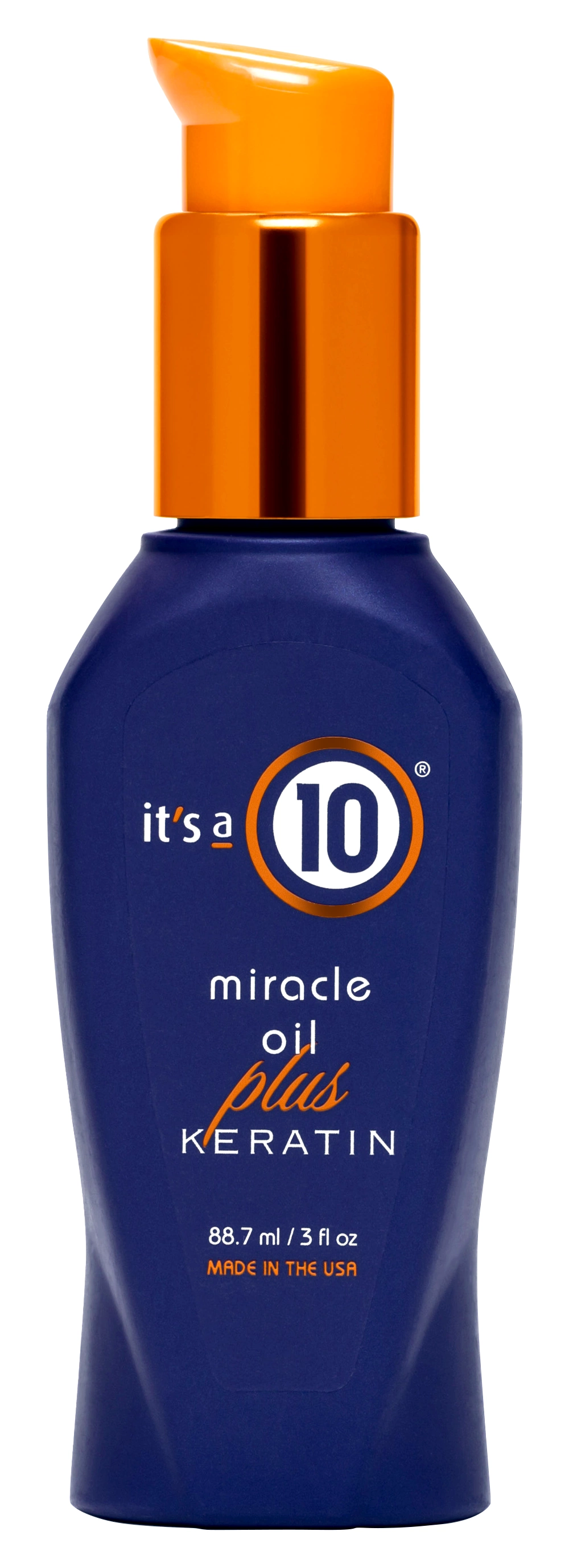 It’s a 10 Miracle Oil Plus Keratin Sofortiger Glanz und Regeneration ohne Beschwerung Leichtes Öl mit Keratin, das das Haar stärkt, glättet und vor Frizz, Hitze und Farbverblassen schützt. Schon ein paar Tropfen genügen für ein sichtbar gesünderes und glänzenderes Aussehen – vor und nach dem Styling. Anwendung: Eine kleine Menge auf sauberes, handtuchtrockenes Haar auftragen. Lassen Sie sie an der Luft trocknen oder mit Wärme behandeln. Massieren Sie es gegebenenfalls in trockenes Haar ein, um Frizz zu bändigen.