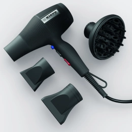 KIEPE BARBER THOOR - Hochwertiger und hocheffizienter Haartrockner. Mit einem Motor mit einer Leistung von 1800-2200 W. THOOR ist in der Lage, einen konstanten und starken Luftstrom zu gewährleisten, ideal für schnelles Haaretrocknen. Modernes und elegantes Design des Haartrockners mit charakteristisch klaren und eleganten Linien, begleitet von einer Soft-Touch-Oberfläche, die ein Gefühl von hoher Qualität und Aufmerksamkeit für Details vermittelt. Perfekt für den professionellen Einsatz im Salon. Die Anwesenheit von zwei austauschbaren Düsen, einer breiten und einer schmalen, ermöglicht es Ihnen, den Luftstrom dort zu konzentrieren, wo er am meisten benötigt wird. Darüber hinaus ermöglichen Ihnen verschiedene Geschwindigkeits- und Temperatureinstellungen, sich an unterschiedliche Trocknungsbedürfnisse anzupassen.