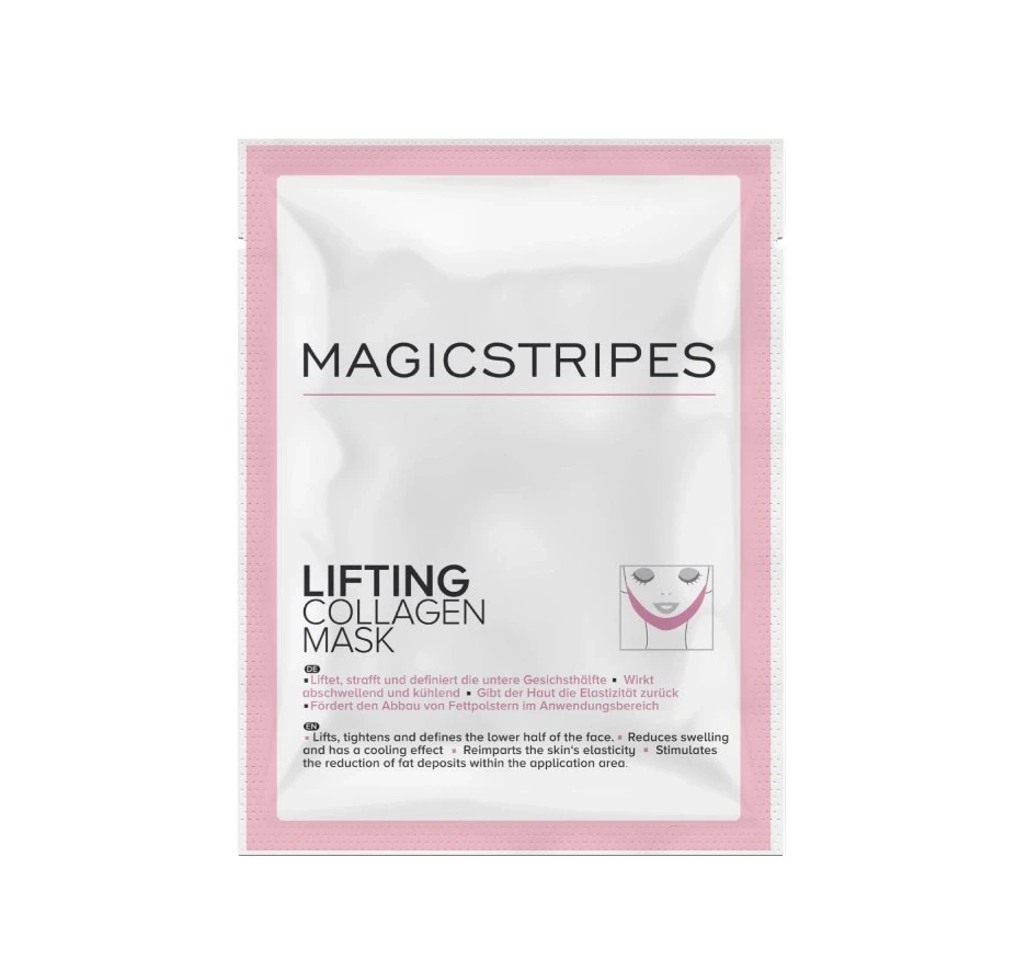 Magicstripes Lifting Collagen Mask je jednorázová pleťová maska s kolagenem, která pomáhá zpevnit kontury obličeje, vyhladit jemné vrásky a navrátit pleti pružnost. Díky účinnému složení podporuje tvorbu kolagenu, intenzivně hydratuje a zanechává pokožku svěží, vypnutou a mladistvě rozzářenou. Jedno balení obsahuje 1 kus, ideální pro vyzkoušení nebo jako rychlá regenerační kúra.