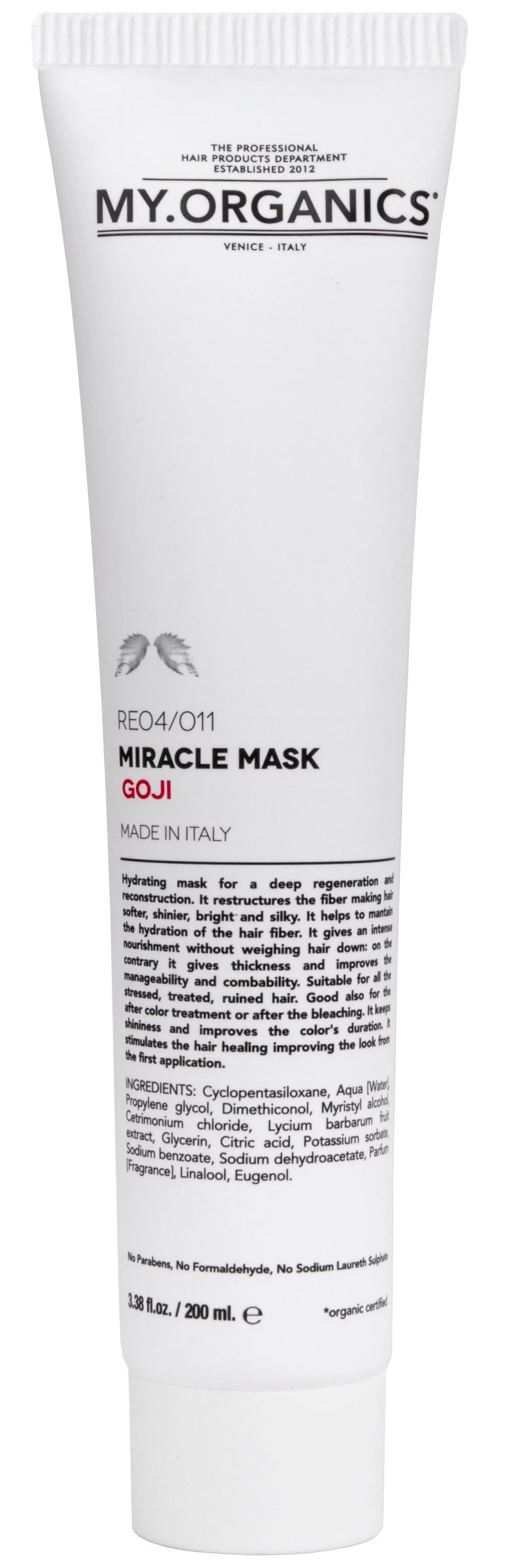 Wunderbare Feuchtigkeitsmaske MY.ORGANICS Miracle Mask Goji für tiefenwirksame Regeneration und Rekonstruktion der Haare. Regeneriert die Struktur der Haarfaser und verleiht dem Haar Geschmeidigkeit, Strahlkraft, Glanz und Samtigkeit. Trägt positiv zur Aufrechterhaltung des richtigen Feuchtigkeitsniveaus bei, ohne das Haar zu beschweren, im Gegenteil, es verleiht der Frisur Volumen und Form. Das Haar lässt sich nach der Anwendung leichter kämmen und neigt nicht dazu, sich zu verfilzen. Geeignet für alle Haartypen, die unter übermäßiger Trockenheit, Dehydratation und Spliss leiden. Ideale Hilfe für erschöpfte, überlastete, beschädigte, poröse und müde Haare. Auch geeignet als Kur nach chemischem Färben, Blondieren und Dauerwellen. Hilft, die Farbe über einen längeren Zeitraum strahlend zu erhalten. Stimuliert die Fähigkeit zur Selbstregeneration der Haare und verbessert ihr Aussehen bereits ab der ersten Anwendung.