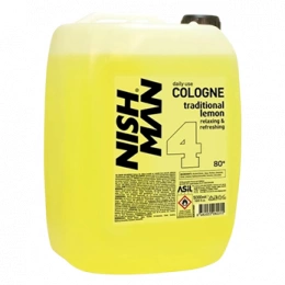 <p><b>NishMan After Shave Cologne 4 Lemon</b> - tradičná citrusová kolínska voda s obsahom 80% alkoholu, ktorá osviežuje, dezinfikuje a prináša pokožke sviežosť po každom holení. Jej energická vôňa citróna s jemnými tónmi pomarančového kvetu a ruže pretrváva počas celého dňa.</p><p><b>Vôňa:</b>&nbsp;svieža citrusová aróma citróna s jemnými kvetinovými tónmi</p><p><b>Hlavné vlastnosti:</b></p><ul><li>Vhodná pre všetky typy pleti</li><li>Upokojuje a osviežuje pokožku</li><li>80% alkohol pre účinnú dezinfekciu a prevenciu proti baktériám</li><li>Dlhodobo pretrvávajúca vôňa</li><li>Praktické balenie 5000 ml - ideálne pre profesionálne použitie v salónoch</li><li>Tonizuje, vyrovnáva hydratáciu a urýchľuje hojenie drobných poranení</li></ul><p><b>Použitie:&nbsp;</b>Naneste malé množstvo na čistú pokožku po holení alebo kedykoľvek počas dňa na osvieženie.</p><p><b>Upozornenie:&nbsp;</b>Len na vonkajšie použitie. Uchovávajte mimo dosahu detí a ohňa. Zabráňte kontaktu s očami. Pri podráždení prestaňte používať.</p>