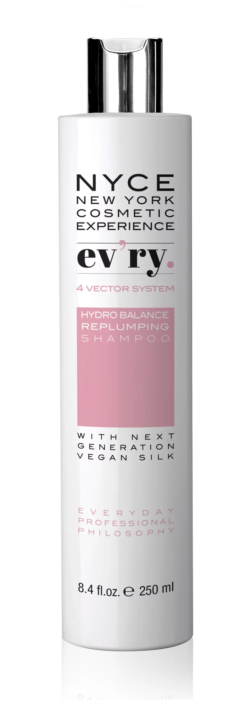 NYCE EVRY HYDRO BALANCE REPLUMPING SHAMPOO VEGANES FEUCHTIGKEITSSPENDENDES SHAMPOO – mit einer einzigartigen Formel aus veganen Biopolymeren und Hydrogel. Shampoo für trockene Kopfhaut, müdes, trockenes und geschädigtes Haar. Die Haut wird in der Tiefe genährt, hydratisiert und mit natürlichen Inhaltsstoffen ausgeglichen, die den natürlichen pH-Wert nicht erhöhen.