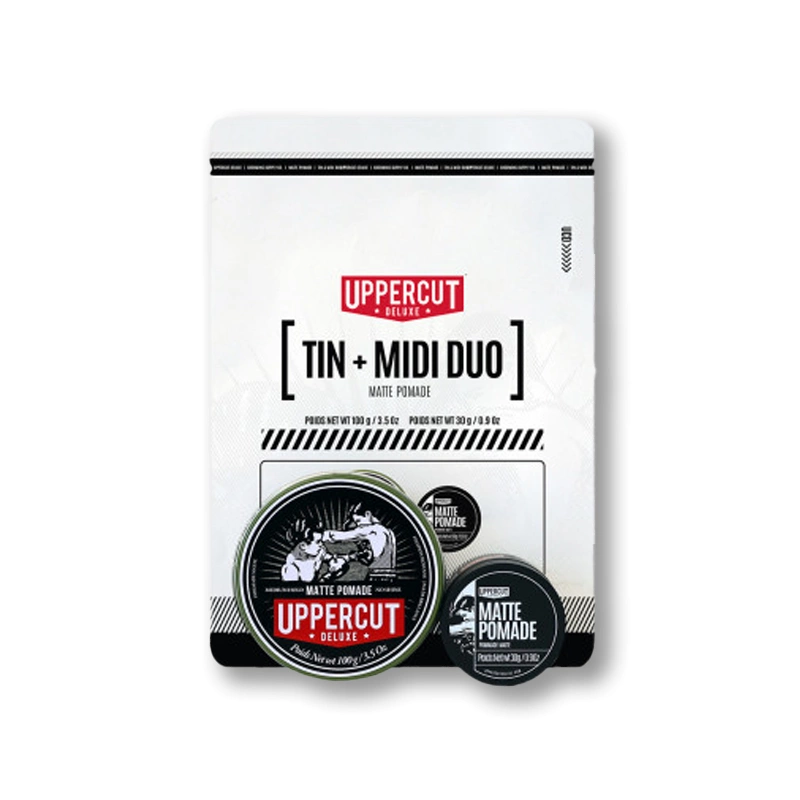 <p>Balenie obsahuje jednu strednu (100 g) a jednu midi (30 g) veľkosť Uppercut Deluxe - Matná pomáda.</p><p>Matná pomáda Uppercut Deluxe Matt Pomade Hair je navrhnutá tak, aby vašim vlasom dodala potrebný tvar a štýl, moderné aj klasickejšie. Matný efekt dodá vášmu účesu viac prirodzenosti. Nezáleží na tom, či sú vaše vlasy dlhé alebo krátke - tento nástroj pomôže vytvoriť a opraviť účes na ľubovoľnú dĺžku. Vhodný pre všetky typy vlasov. Výrobok je na vodnej báze, čo uľahčuje umývanie pomady na konci dňa.</p><ul><li>Stredná fixácia</li><li>Žiadny lesklý, má matný prírodný vzhľad</li><li>Vynikajúci výkon v rôznych štýloch, klasických aj moderných</li><li>Pre všetky typy a dĺžky vlasov</li><li>Na báze vody</li></ul><p><b>Ako používať: </b> Pri nanášaní pomády na vlasy je vždy lepšie začať s menším množstvom produktu, taktiež sa oplatí produkt pred nanesením zohriať v rukách, aby sa začal trochu topiť a s týmto trikom sa vám bude ľahšie nanášať do vlasov. Použite prsty alebo hrebeň, aby váš účes dokončil vzhľad. </p>