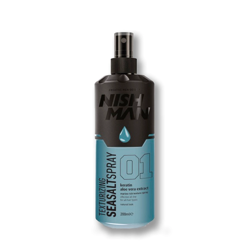 <p><b>Nishman 01 Texturizing Sea Salt Spray </b>s morskou soľou pomáha vytvoriť objemný, matný účes s efektom „ako od mora“. Zvýrazňuje štruktúru vlasov a podporuje strapatý, kučeravý vzhľad.</p><p><b>Vôňa:</b> sladká a svieža</p><p><b>Hlavné vlastnosti:</b></p><ul><li>Slaný sprej na vlasy s morskou soľou</li><li>Efekt účesu „ako od mora“ (beach look)</li><li>Pomáha vytvoriť strapatý, kučeravý vzhľad</li><li>Dodáva vlasom objem</li><li>Matný výsledok</li><li>Elegantne zvýrazňuje štruktúru vlasov</li><li>Možné použiť na suché aj vlhké vlasy</li><li>Najlepší efekt pri aplikácii na mokré vlasy a dosušení fénom</li></ul><p><b>Použitie:</b> Sprej aplikujte na suché alebo vlhké vlasy. Pre maximálny výsledok naneste na mokré vlasy a dosušte fénom.</p><p><b>Upozornenie: </b>Len na vonkajšie použitie. Vyhnite sa kontaktu s očami. Pri zasiahnutí očí okamžite vypláchnite vodou. V prípade podráždenia prestaňte používať. Uchovávajte mimo dosahu detí.</p>