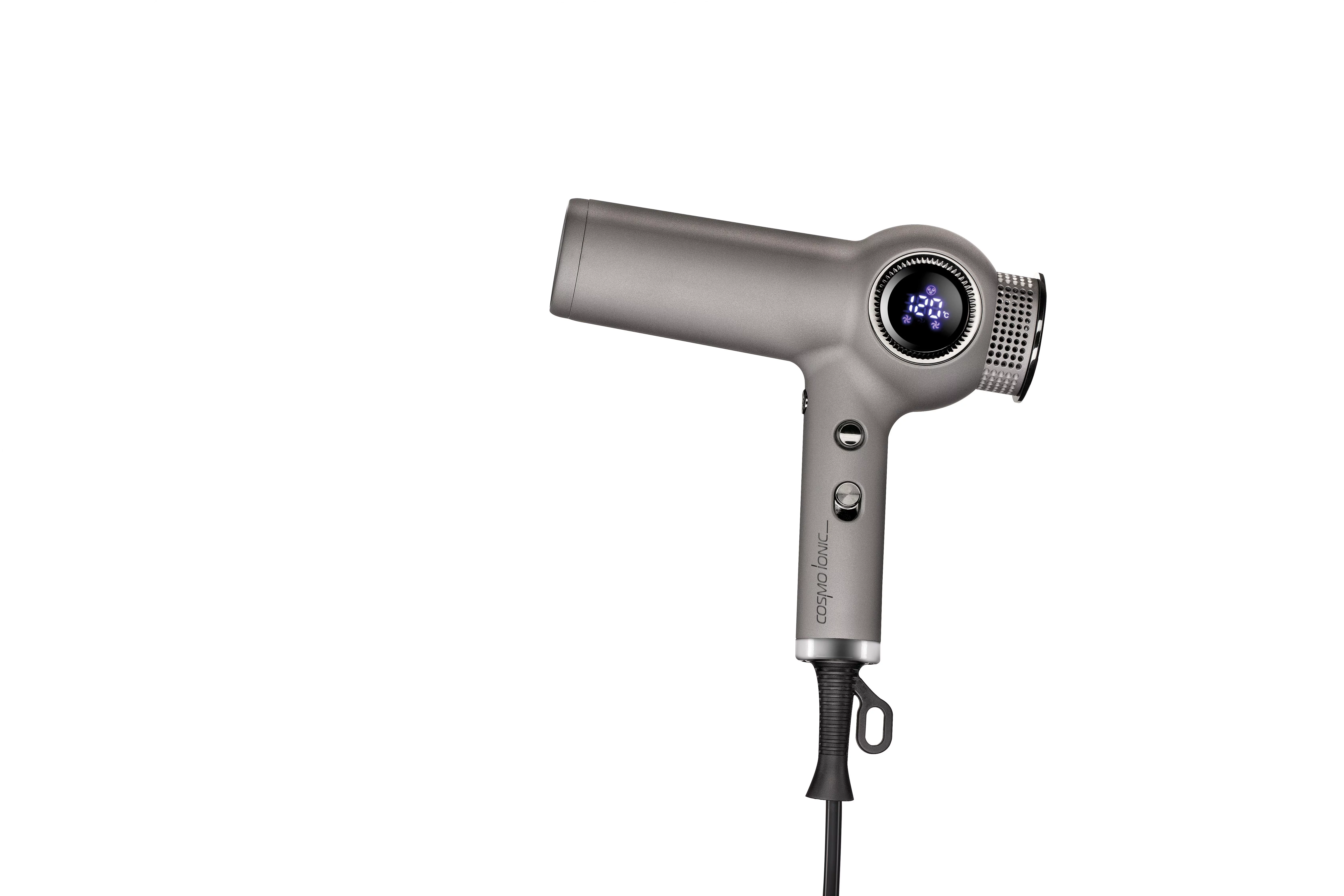 STHAUER - PROFESSIONELLER FÖHN Cosmo Ionic. Ultraleichter, leistungsstarker und kompakter Haartrockner der neuen Generation, ausgestattet mit einem Ionisator. Ionentechnologie - Ogya leistungsstarker Motor, der Luftstrom erzeugt, verkürzt die Trocknungszeit und wirkt gegen statische Elektrizität. Reduziert Frizz und gespaltene Spitzen. Das digitale Display ermöglicht die Überwachung des Luftstroms beim Haaretrocknen. 1800 Watt, 220-240V~ 50/60 Hz, Gewicht 300 g cm 19,5x18h O 5.