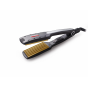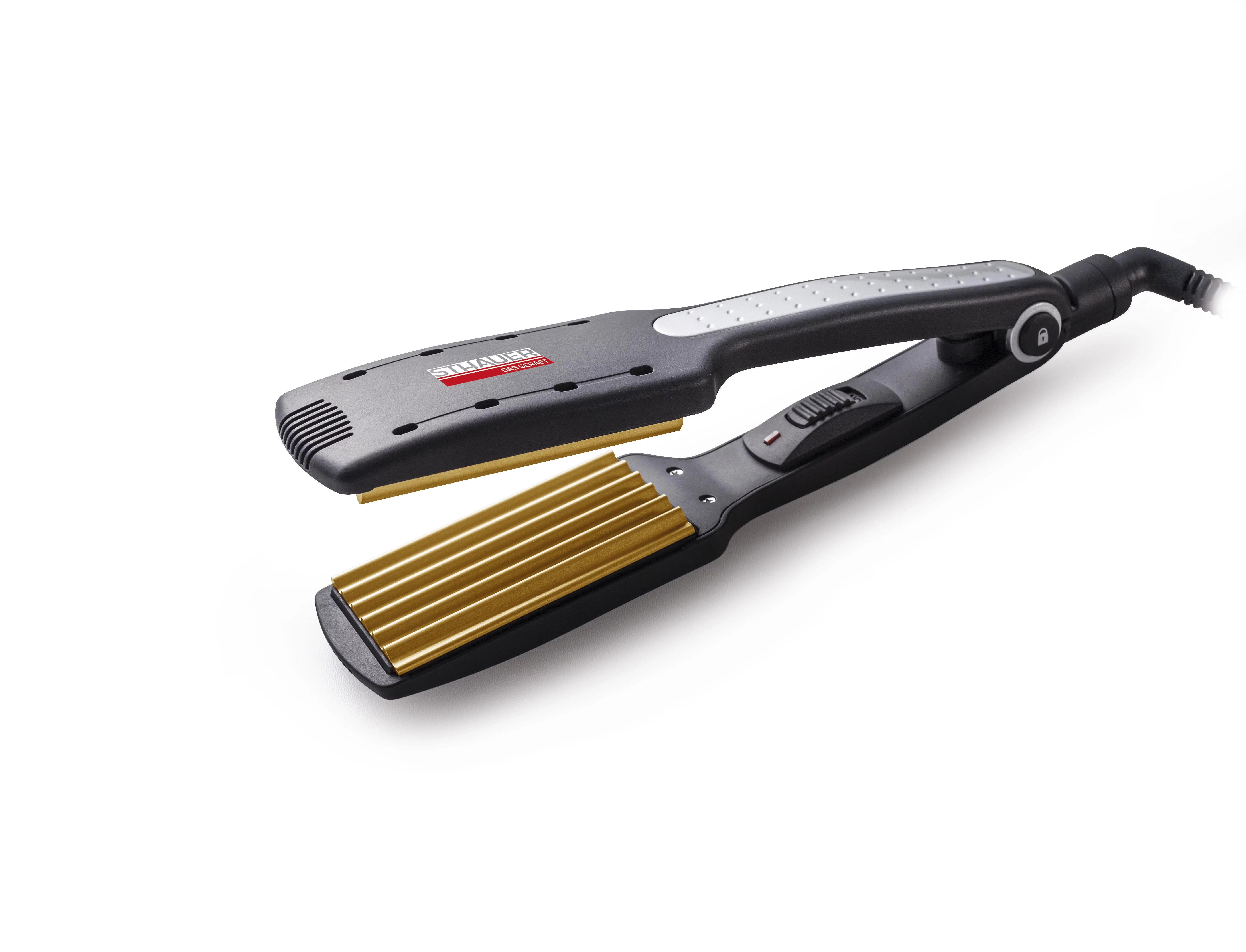 Profesionální krepovací žehlička na vlasy STHAUER JAVA TOURMALINE GOLD. Turmalínové desky vytvoří na vlasech definované zvlnění. Turmalínový povrch rovnoměrně rozkládá teplo a udržuje ve vlasech vlhkost. Nahřívá se na teplotu 200 °C. Žehlící desky se snadno přizpůsobí všem typům vlasů. Žehlící desky mají perfektní odolnost proti opotřebení. K dispozici 7 krepů. Kabel s otočnou koncovkou 52-60 wattů, 100-240V~ 50/60 Hz.