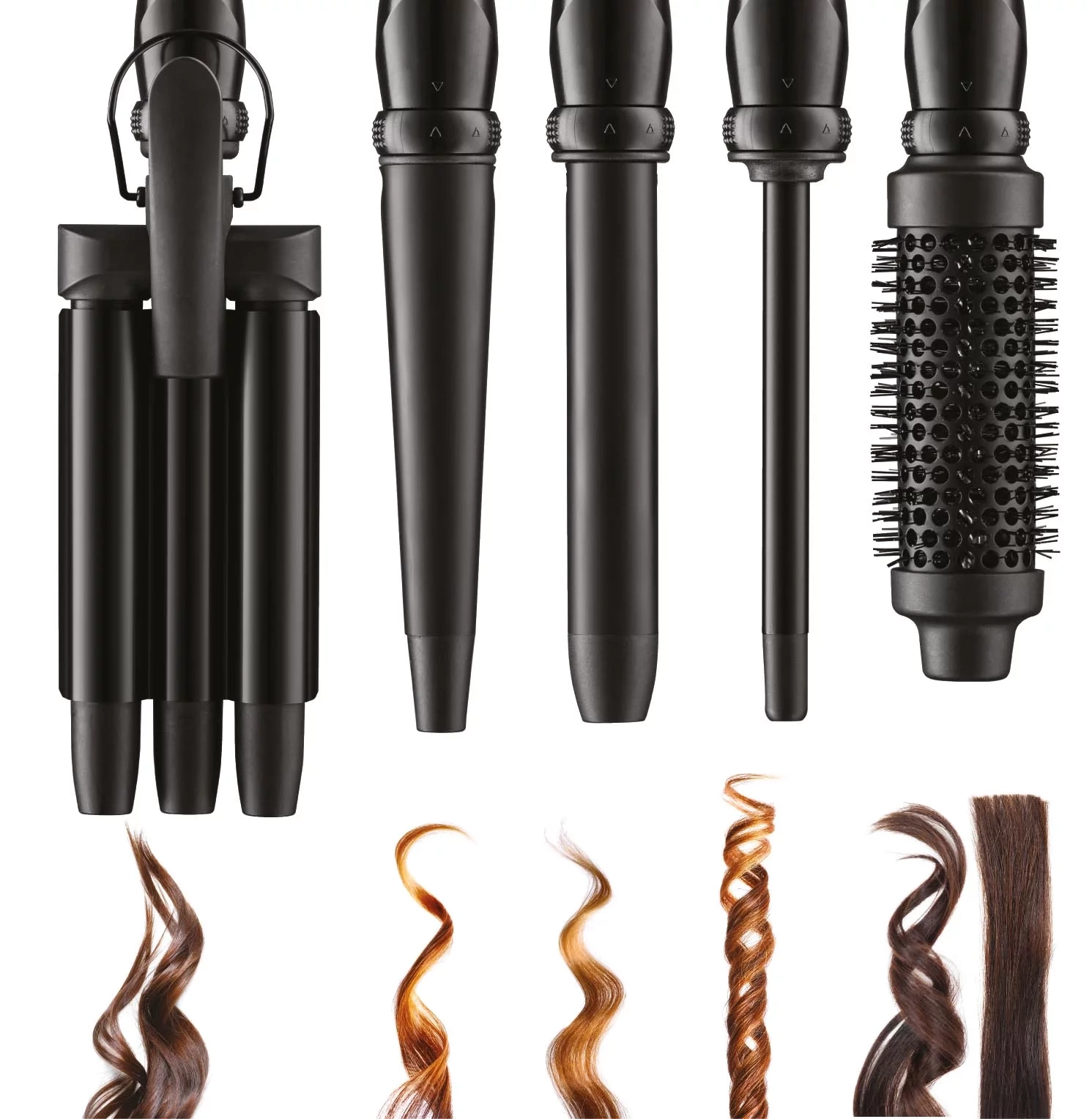 STHAUER - PROFESSIONELLES WELLENSET. 5 v1. Aircombo Pro Styling ist ein Set für perfekte Wellen mit einfach austauschbaren Aufsätzen für viele verschiedene Styles. Alle Aufsätze sind aus Turmalinkeramik gefertigt und mit einer isolierten Spitze ausgestattet. Jeder Aufsatz wird auf eine Basis geklickt, die leicht und einfach zu handhaben ist. 360° drehbare Schnur. Automatische Abschaltung. Schnelle Wärme 25-88 Watt 100-240V~ 50/60 Hz