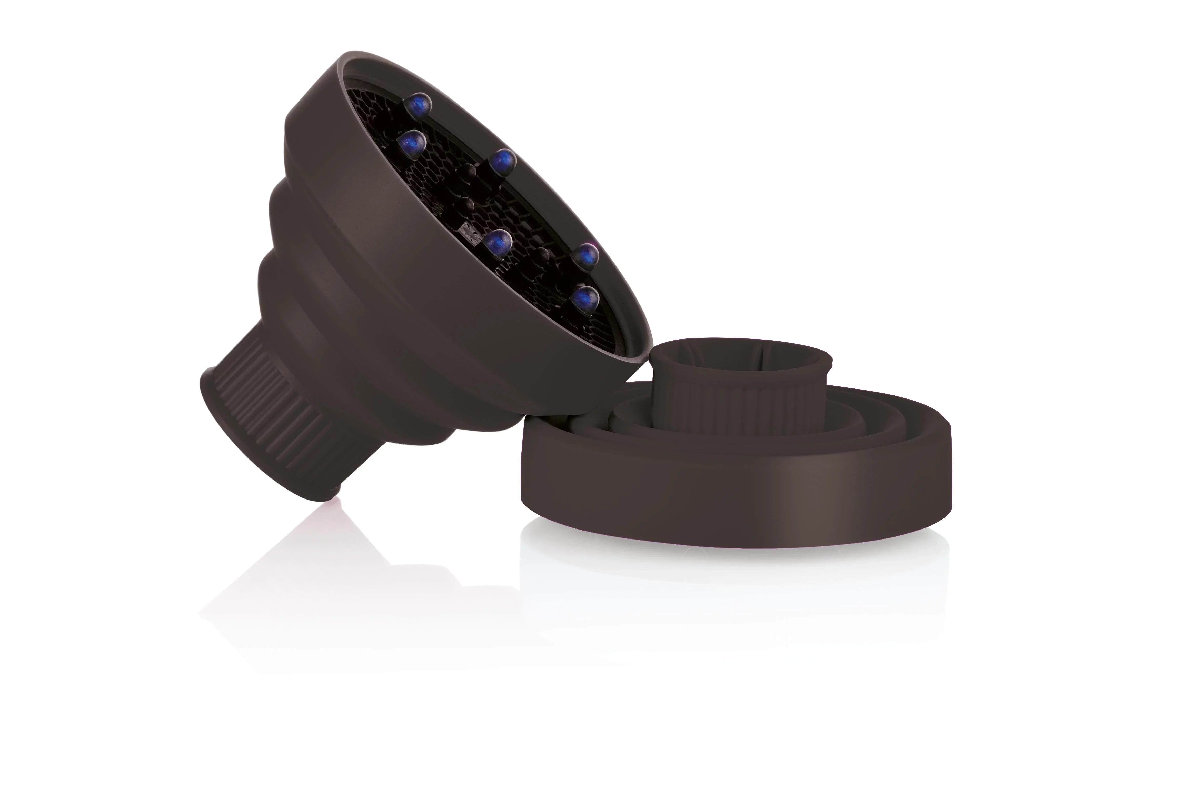 STHAUER - Universeller Silikondiffusor schwarz. Praktische und schnelle Montage. Der Diffusor ist aus hitzebeständigem Silikon gefertigt. Es ist möglich, ihn in eine kompakte Form zu falten. Abmessungen: 5 cm - 5.8 cm, 13.5 cm - 11.5 cm. Wichtig: Messen Sie den Durchmesser des Föhns bei der Bestellung.