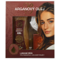 Geschenkverpackung mit Kosmetik mit Bio-Arganöl in einer Papierkassette für eine verwöhnende Hautpflege.
