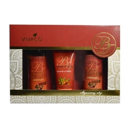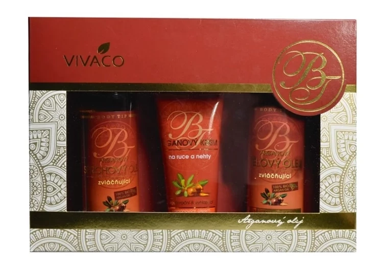 Geschenkverpackung mit Bio-Arganöl-Kosmetik zur Pflege von Körper- und Gesichtshaut in einer luxuriösen Papierkassette.