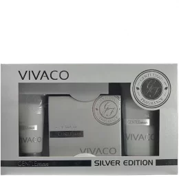 Geschenkverpackung für Herren-Kosmetik Gentleman Silver in einer luxuriösen Papierkassette für die tägliche Haut- und Gesichtspflege.