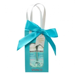 Geschenkverpackung mit Feuchtigkeitspflege mit Hyaluronsäure in Papierverpackung. Schenken Sie Schönheit und Jugend.