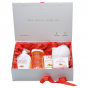 Luxuriöse Kosmetikverpackung mit Mandelöl zur Pflege von Körper- und Gesichtshaut in einer Geschenkbox.