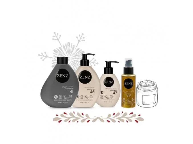 Dank dieses umfassenden Körperpflegepakets wird Ihre Haut hydratisiert und geschmeidig sein. Duschgel mit einem angenehmen Blumenduft wäscht Stress und Unreinheiten ab, und seine sanfte Formel mit Avocadoöl, Glycerin und Aloe Vera spendet Feuchtigkeit und regeneriert die Haut. Für die Handpflege gibt es hier eine sanfte Seife mit 99 % natürlichen Inhaltsstoffen, die reinigt und hydratisiert, sowie die Zenz Blossom Handcreme, die schützt, hydratisiert und Geschmeidigkeit verleiht. Multifunktionales Öl für Körper und Haare mit Patchouli, Zedernholz, Myrrhe, Lavendel, Bergamotte und Geranie spendet dem Haar Feuchtigkeit, Vitalität und Glanz oder nährt und strafft die Haut von Gesicht und Körper.